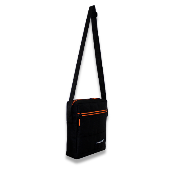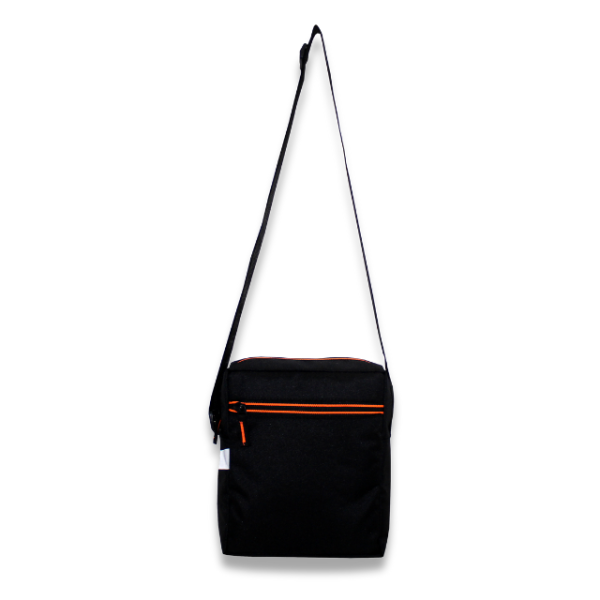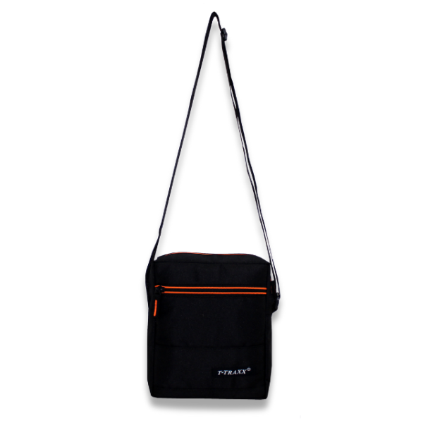 Gents Sling Bag: Black & Orange two color zipper